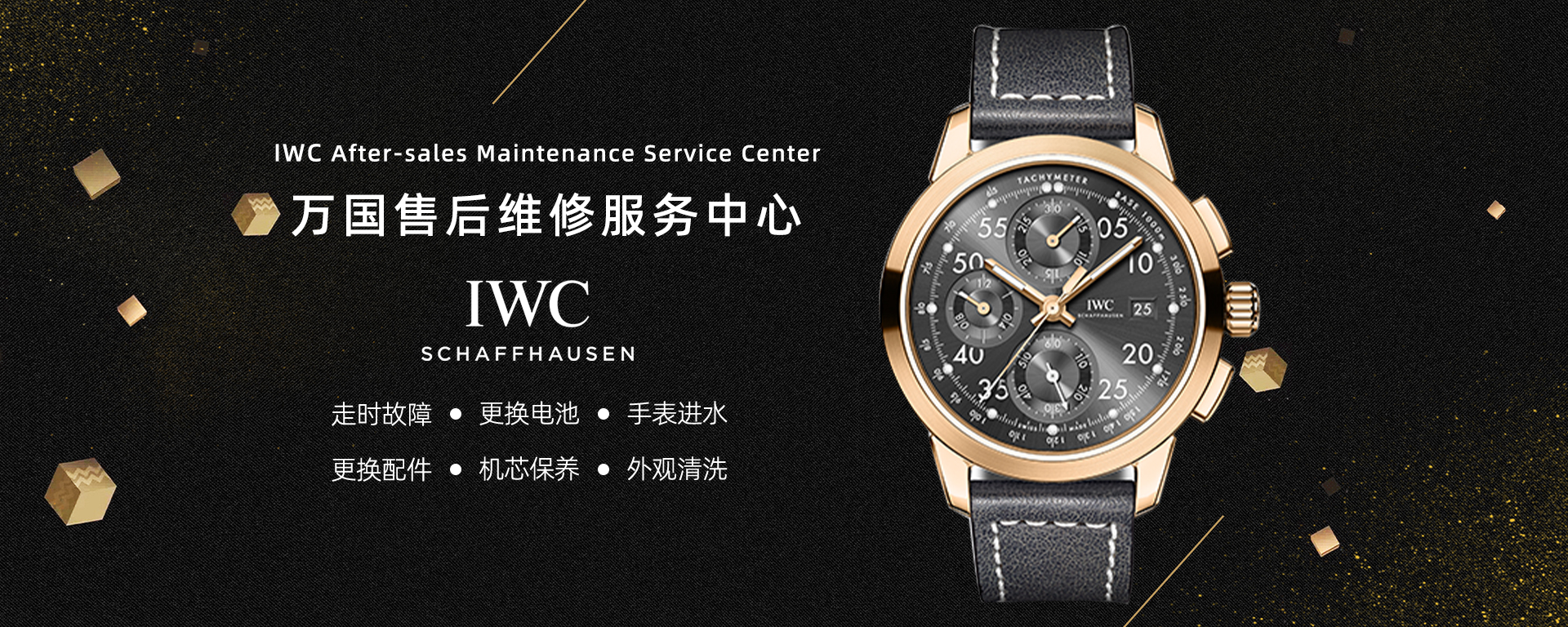 万国官方售后维修服务中心为客户提供专业、全面的手表维修与保养服务,团队由经过专业培训的不乏高级技术顾问和资深技师,他们技艺精湛,能够处理从简单维护到复杂维修的各种需求。中心配备先进的检测与维修设备,确保维修服务的高质量。当您的腕表出现走时故障和机件损坏时,请及时在线预约服务,凭预约码进店尊享技师快捷服务。同时我们构建了出色的客户维修服务网络,您的腕表有任何问题均可拨打客服电话咨询400-187-8753,我们竭诚为您提供在线咨询及检修服务,以保证您的腕表得到始终如一的精心保养与维护,保障它的恒久价值与可靠性能得以世代相传。请务必定期保养及检修您的腕表,才...